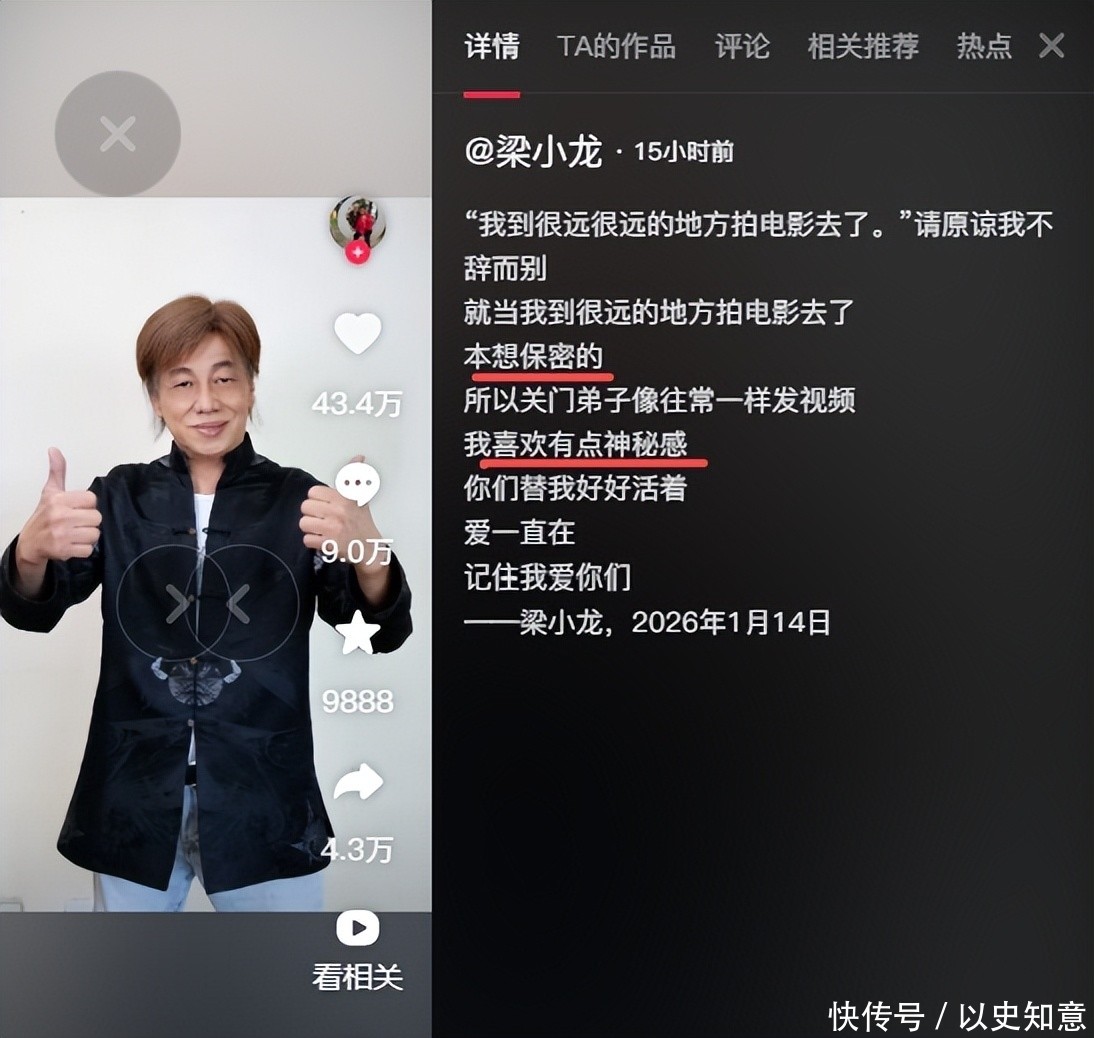 5. 梁小龙留给粉丝的最后一句话意味深长:“我要去一个很远很远的地方拍电影了,请原谅我的不告而别。”这句充满诗意的告别,仿佛是他为自己人生谢幕精心设计的一幕台词。