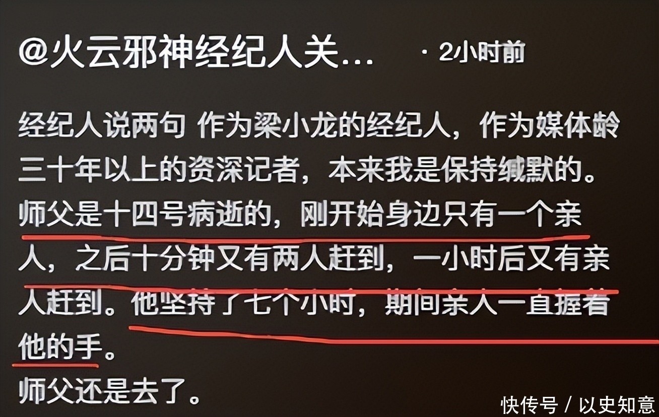 7. 随着消息不断发酵,梁小龙的经纪人最终不得不打破沉默,对外披露了一些令人动容的临终细节。